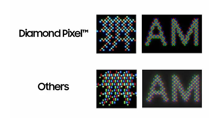 第二则是真RGB技术,也叫做全RGB技术,或者Real RGB技术。Real RGB OLED专注于提升像素排列的精度、色彩表现,并克服钻石和类钻石排列的文字等彩边问题,其也可与无偏光片技术兼容。该技术每一个像素中,包含完整、不与其他像素复用的RGB子像素。虽然这不是崭新的技术选择,而是标准显示器,如CRT、LCD、LED或者PDP此前广泛采用的方案,但是在早期Real RGB OLED加工工序复杂,成本高、成功率低……因此,才被如RGBG或者钻石排列取代。现在,随着加工工艺,特别是OLED材料的进化,Real RGB已经成为下一代的共识性选择。