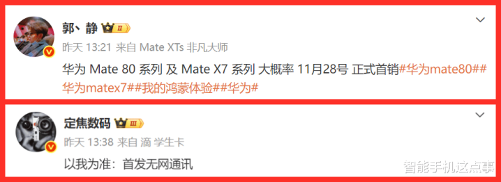 总而言之,超长续航、无网通讯、红枫影像以及满血芯片,每一处升级都精准解决用户痛点,且两款旗舰机将在11月25日揭开神秘面纱,并于11月28日开启首销。
